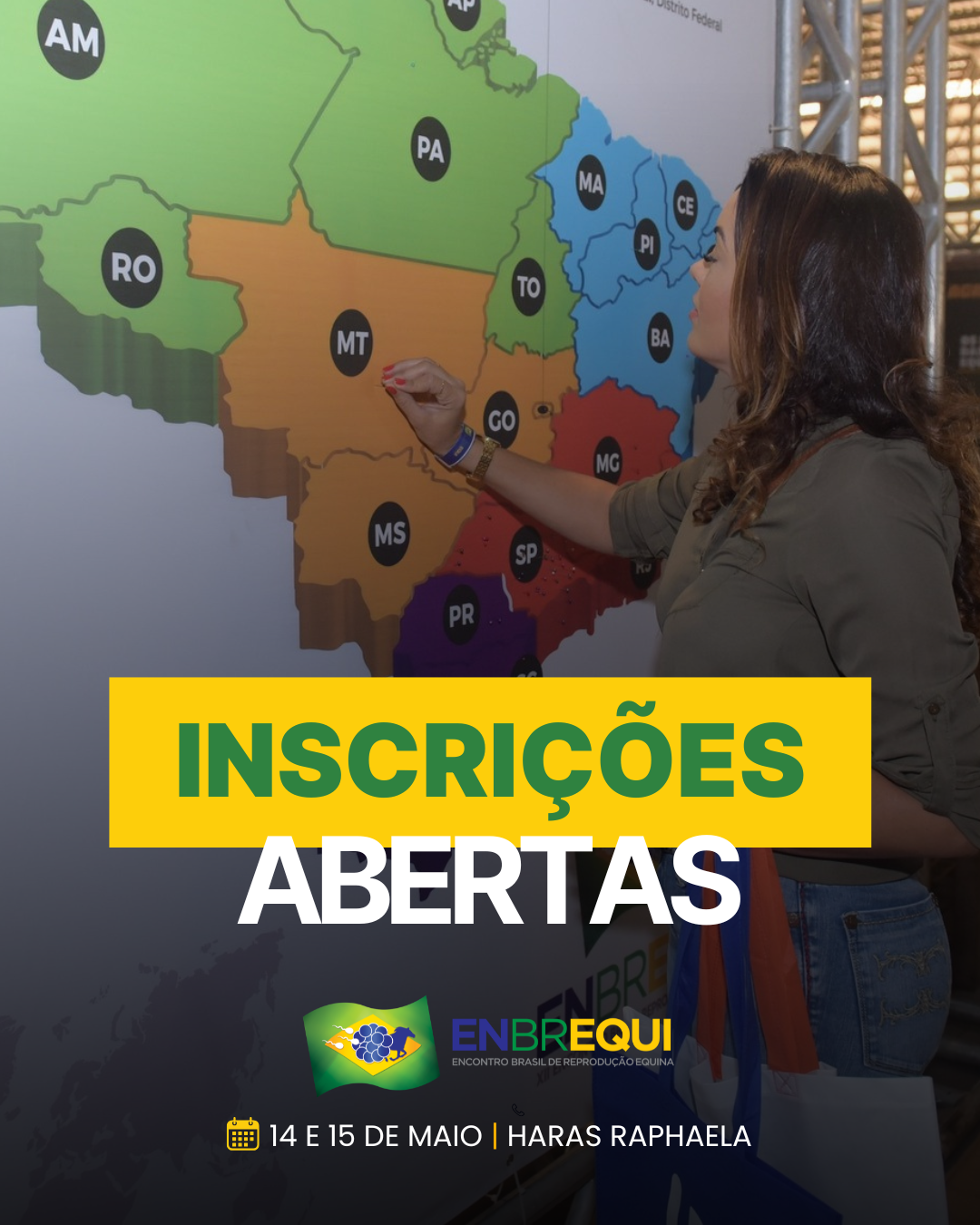 As inscrições para o XIV Encontro Brasil de Reprodução Equina (ENBREQUI), que acontecerá nos dias 14 e 15 de Maio de 2026 no Haras Raphaela estão abertas!